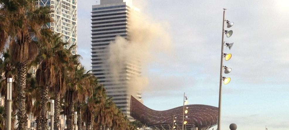 El equipo de Tintorerías Solananes ha trabajado durante dos noches en la eliminación de olores debido a un incendio en una de las campanas extractoras de una conocida cervecería situada en la calle Marina , en la torre Mapfre, en Port Olímpic de Barcelona. La fuerte humareda ha provocado el desalojo de toda la Torre Mapfre.